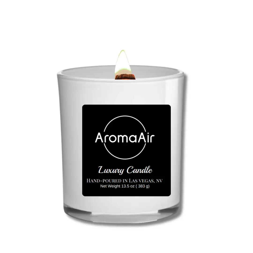 The high concentration of Aroma/Essential oil blends to provide beautiful room-filling fragrances. • Each candle contains an all-natural crackling wooden wick.