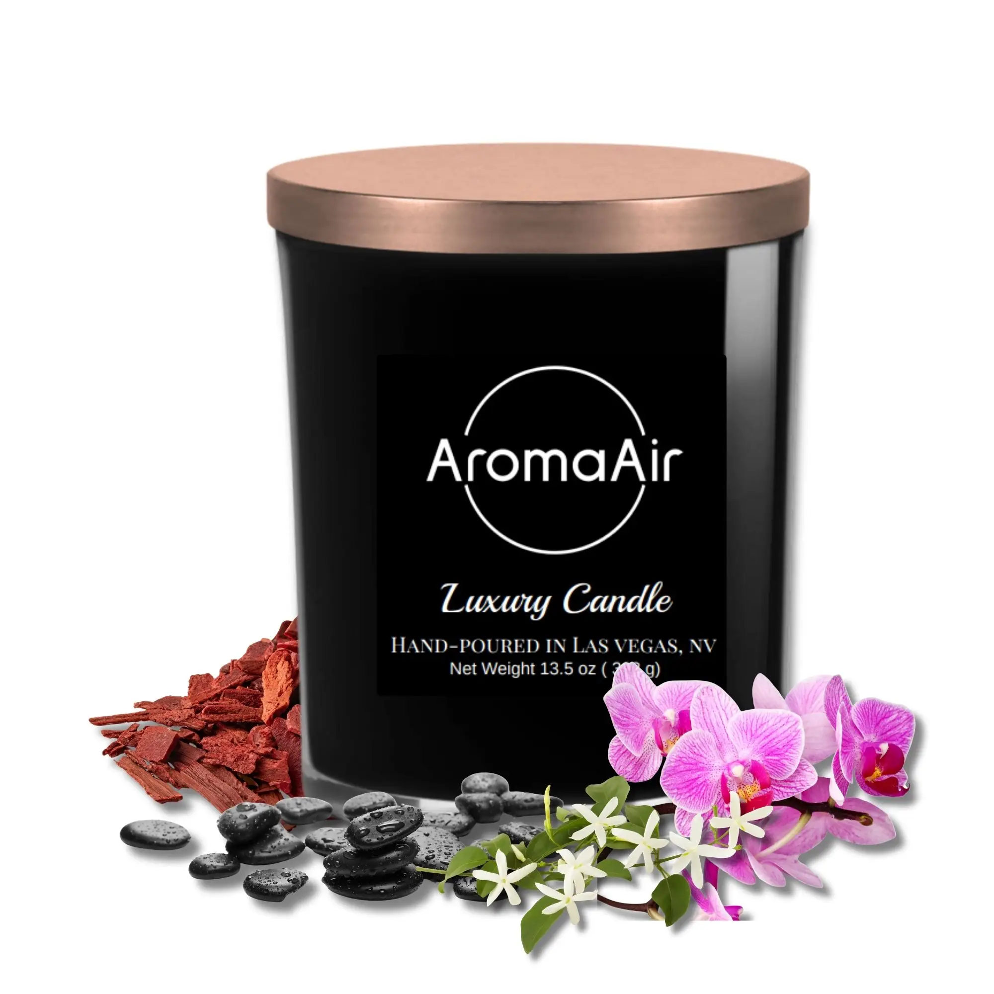 The scent opens with luscious peach and soft vanilla, unfolding into a sophisticated heart of orchid, jasmine, and violet. A deep, lingering base of amber, musk, cedar, sandalwood, patchouli, and vanilla grounds the blend, creating a warm and alluring atmosphere that envelops any room in modern luxury.