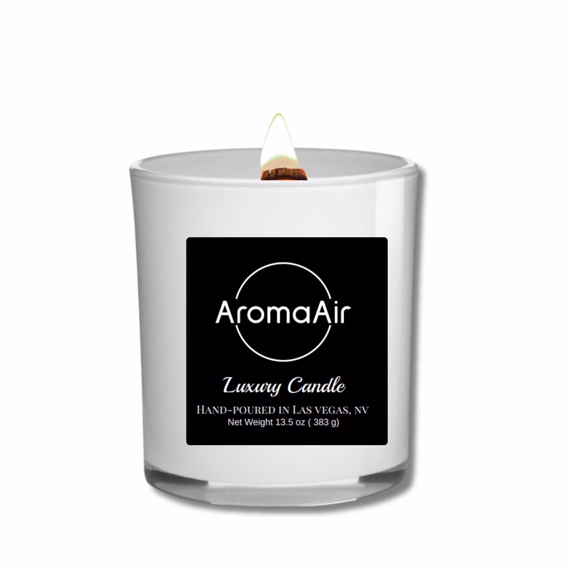 Made with a soy wax blend • The high concentration of Aroma/Essential oil blends provides beautiful room-filling fragrances. • Each candle contains an all-natural crackling wooden wick