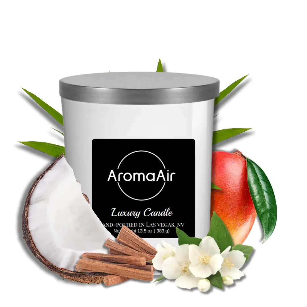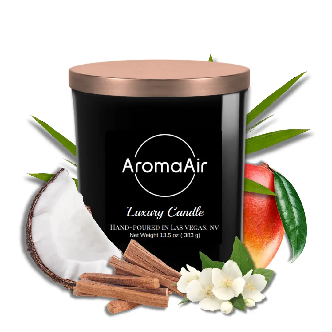 Made with a soy wax blend • The high concentration of Aroma/Essential oil blends provides beautiful room-filling fragrances. • Each candle contains an all-natural crackling wooden wick