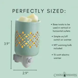 | Warmer Features | This warmer with rotating base, NP7 Warming bulb, and plug is compatible with 3 prong US outlets and is 15 watts. |